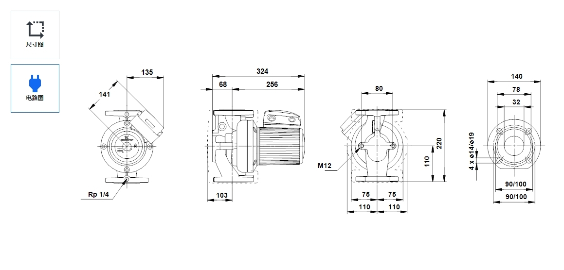 Grundfos UPS 32-120 F B 220 Used for Heating Three Speed Circulation Pump, Equipped with Corrosion-Resistant Bronze Pump Casing for Hot Water Images |